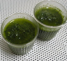 加えて砕き、その後バジルの葉を入れなめらかになるまでまわす。