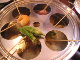 車海老。里芋。たまねぎ。にんにく。鶏ササミしそ巻き。しいたけ。レンコン。 他こういったものも良し。