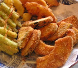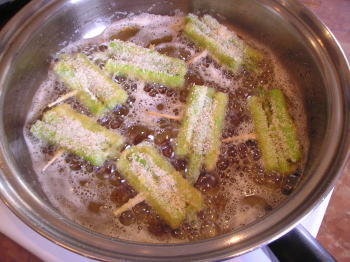 【1】適当に切って衣をつけ、1センチの油で揚げる。