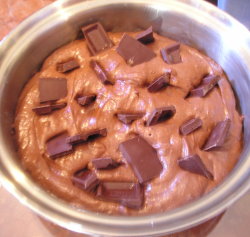 【4】【3】に板チョコを割り入れクルミも加えてケーキモードで焼き上げる。