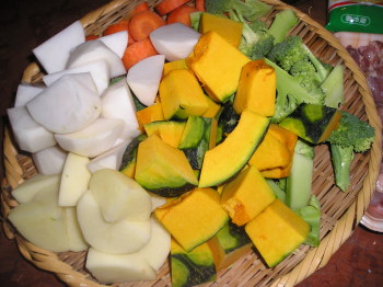 にんじんとか、じゃがいもなどさきに入れる