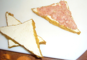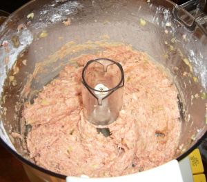 【1】FP(ドゥブレード)でA)をよく練り4等分する。
