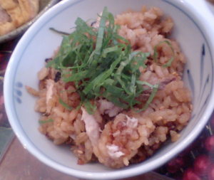【1】大ソースパンに米を入れ、水、しょうゆ、酒を入れサンマも入れフタをし中火にかける。カタカタ鳴ったら弱火に落とし12分、蒸らしに10分。