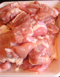 【2】次に【1】の鍋で鶏をさっとボイルする。 →ザルに揚げる