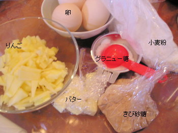 【2】中フライパンにクッキングシートを敷きプレート170度でバターとくし切りのリンゴを並べ入れる。