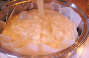 【4】生地を中フライパンに入れて170度で約10分焼く。